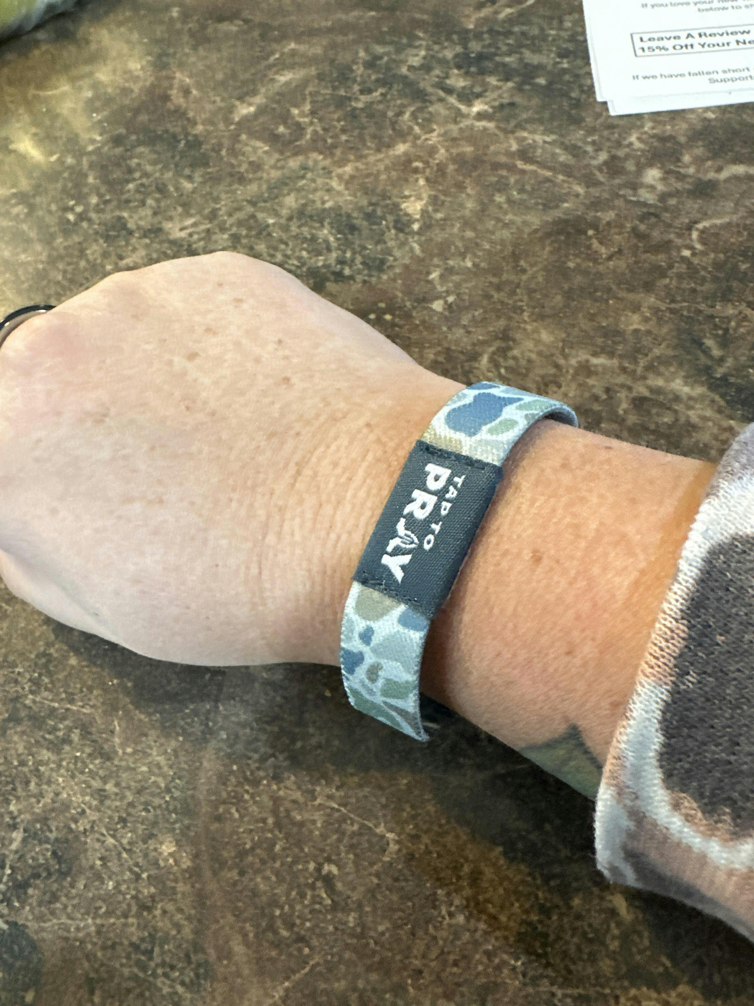 Versible is excited to introduce our new line of Tap To Pray™ bracelet. No app required, just tap the patch with your smartphone to receive a new bible verse and prayer every day. Plus, you can get a new verse anytime you want; simply hit the "New Verse" link on the bottom of the page! Tap To Pray Bible Bracelets work with most smartphones. Our bracelets are soft, stretchy, reversible and waterproof! The River Rock Camo Moss & Slate Bracelet features two reversible patterns and comes in 5 sizes, making it easy to find the wristband that's right for you!